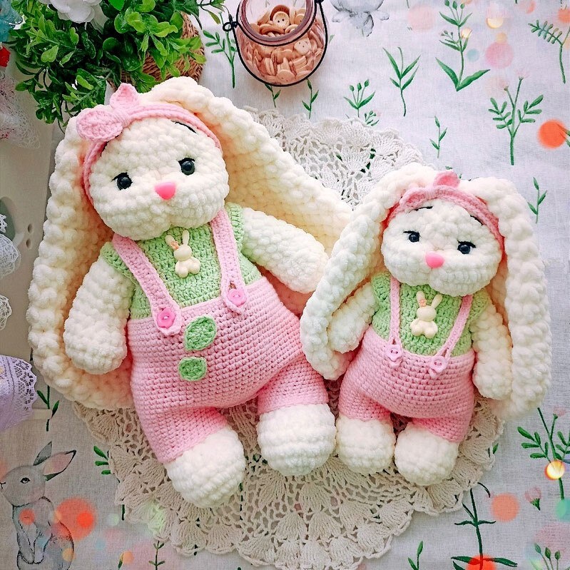 Бесплатный мастер-класс от Марианны Малыгиной по вязанию плюшевых зайчиков по имени Бу и Бубу крючком. Размер вязаных игрушек примерно 30 и 22 см. Для...