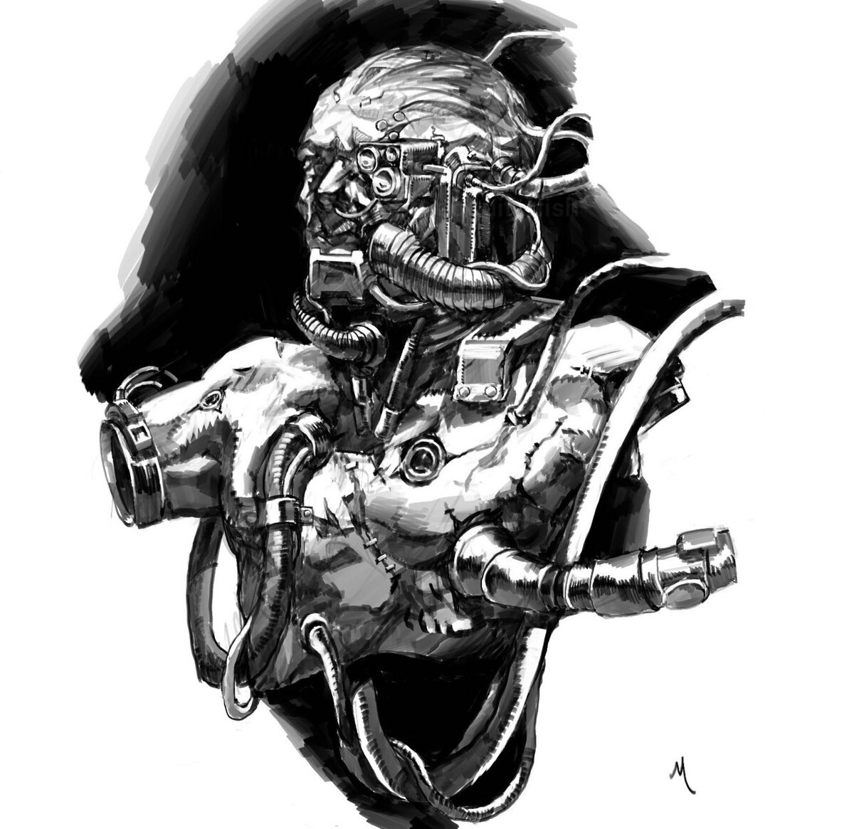 Дредноут – это финальное слияние машины и тела, вершина технологических достижений человечества в данной сфере, и тем самым является могучим воплощением воли Машинного бога. Механический компонент состоит из многочисленных продвинутых сложных систем, биологическим же компонентом служит совершенно неординарный человек. Пилоты – неизменно мудрые, старые ветераны с тысячелетним опытом (не всегда, Габрил Телемах - почтенный Телемехр - прослужил в ордене 10 лет, и был помещен в дредноут из-за идеальной совместимости). Избранный пилот погружается в амниотические жидкости и хирургическим путем имплантируется в бронированный саркофаг. Затем с помощью мыслеимпульсных проводов его подключают к сенсорным системам, позволяющим ему слышать и видеть так, словно он по-прежнему состоит из плоти и крови. После закрытия саркофага пилот остается погребенным внутри до самой гибели в бою. Саркофаг со стазисным хранилищем делают его практически бессмертным, хотя с веками он начинает постепенно терять связь