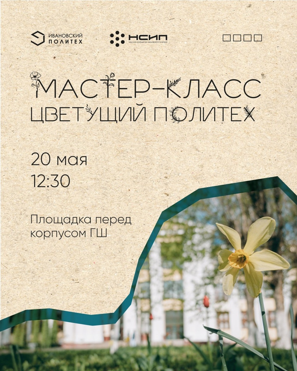 Мы знаем, что вы долго этого ждали! Почва подготовлена, цветы с перчатками закуплены, а значит самое время переходить к украшению территории нашего вуза 🌱 20 мая в 12:30 посетите мастер-класс по посадке цветов в рамках проекта #Политех_Цветущий, обучитесь основам практического садоводства и сделайте наши клумбы перед главным корпусом еще красивее 🌸 👉 Регистрируйтесь по ссылке Программа развития экологической культуры и окружающей среды #Политех_Цветущий реализуется при грантовой поддержке Федерального агентства по делам молодёжи — Росмолодёжь. #РосмолодёжьГранты #Росмолодёжь