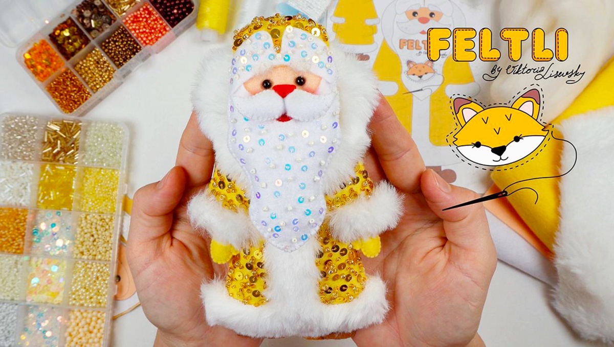 В этом мастер-классе мы будем шить очень нарядного Деда Мороза из фетра — с меховой шубкой, расшитой пайетками бородой и множеством красивых деталей, которые придают образу праздничность и волшебство. Такая ёлочная игрушка станет настоящим украшением новогоднего декора, эффектным акцентом на праздничной ёлке или душевным подарком, сделанным вручную с любовью. Образ Деда Мороза в этом варианте получился более торжественным: блестящая расшитая борода, мягкая меховая отделка и изящные варежки с валенками делают его не только узнаваемым символом зимы, но и настоящим украшением интерьера. В видео я пошагово рассказываю как сшить Деда Мороза своими руками — от переноса выкройки до финальной сборки и декора. Мы будем использовать мягкий корейский фетр толщиной 1 мм, мех, пайетки, бисер, клей, наполнитель и нитки в тон фетра. Бисерная вышивка бороды придаёт игрушке нарядный, сказочный вид и делает её особенно праздничной. В отличие от предыдущих версий, здесь я показываю сборку с акцентом на