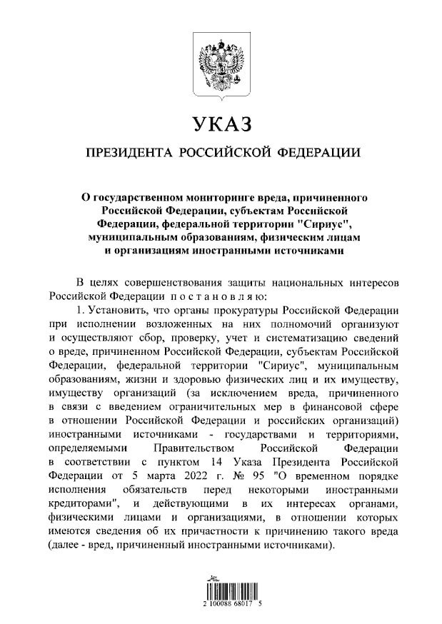 В России займутся мониторингом вреда, причиняемого иностранными государствами и организациями Указ об этом подписал Путин. @SPUTNIKBY