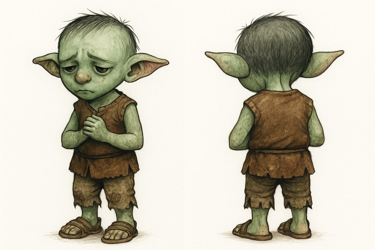 Детское приключение начинается с того, что герои встречают в лесу плачущего гоблинёнка. Детям важна визуализация, поэтому хорошо бы у нас была соответствующая миниатюра. Хотя бы бумажная (pawn). Да где ж её взять? 🤔 Ну как где?! Нарисовать с помощью нейронки, конечно! Распечатать и вырезать. ChatGPT отлично умеет рисовать павны. Двухсторонние! С помощью такого запроса: Создай pawn персонажа D&D. [Описание персонажа/] … [/Описание персонажа] [Требования/] 1. Pawn предназначен для распечатки на цветном принтере. 2. Персонаж должен быть изображён на белом фоне. Без подставки. 3. Персонаж должен полностью помещаться в кадр. 4. Двухсторонний. 5. Лицевая и тыльная стороны отличаются. 6. Рост, поза, одежда, предметы в руках и другие детали на лицевой и тыльной сторонах соответствуют друг другу. [/Требования] И вот вам результат отрисовки с описанием персонажа «Грустный гоблинёнок 5 лет». Продолжение следует... #Гоблины_тоже_плачут@dndpotustoronu #ИИ@dndpotustoronu
