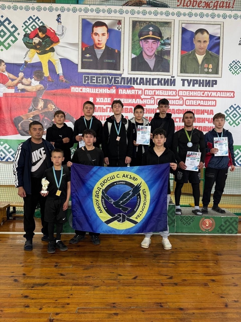 18 мая 2025 года в селе Аскарово Абзелиловского района наши борцы приняли участие в республиканском турнире по спортивной борьбе грэпплинг, посвященном памяти погибших при исполнении воинского долга Ф.Р. Султанова, Ф.Ф. Тимерьянова и Д.Р. Ильгамова. 18 мая 2025 года в селе Аскарово Абзелиловского района наши борцы приняли участие в республиканском турнире по спортивной борьбе грэпплинг, посвященном памяти погибших при исполнении воинского долга Ф.Р. Султанова, Ф.Ф. Тимерьянова и Д.Р. Ильгамова. Продемонстрировать свою силу приехали около 200 спортсменов из разных городов и районов: города Сибай, города Белорецк, города Баймак, Абзелиловский район, Бурзянский район и Хайбуллинский район. Среди мальчиков 2015–2014 г.г.р. в весовой категории 30 кг первое место занял Артём, также он стал «Лучшим борцом» турнира; в весовой категории 38 кг третье место занял Чингиз Кускильдин. Среди юношей 2013–2012 г.г.р. в весовой категории 46 кг второе место – Рустем Хусаинов. Среди юношей 2011–2010 г.г