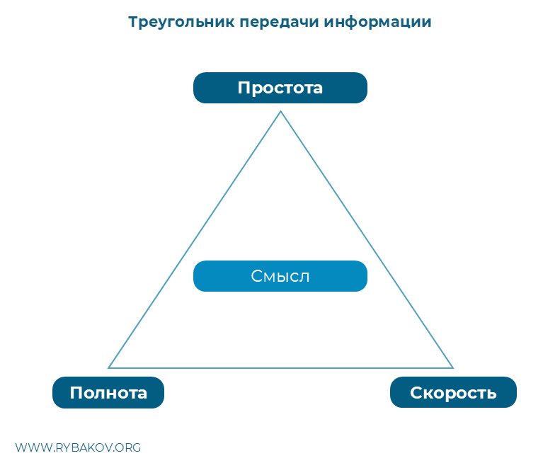 Таким образом, в общем случае, простота представления информации достигается либо за счет снижения полноты, когда объясняется только какая-то часть передаваемого смысла, либо за счет снижения скорости передачи информации, когда передача всего блока информации осуществляется серией нескольких простых сообщений.