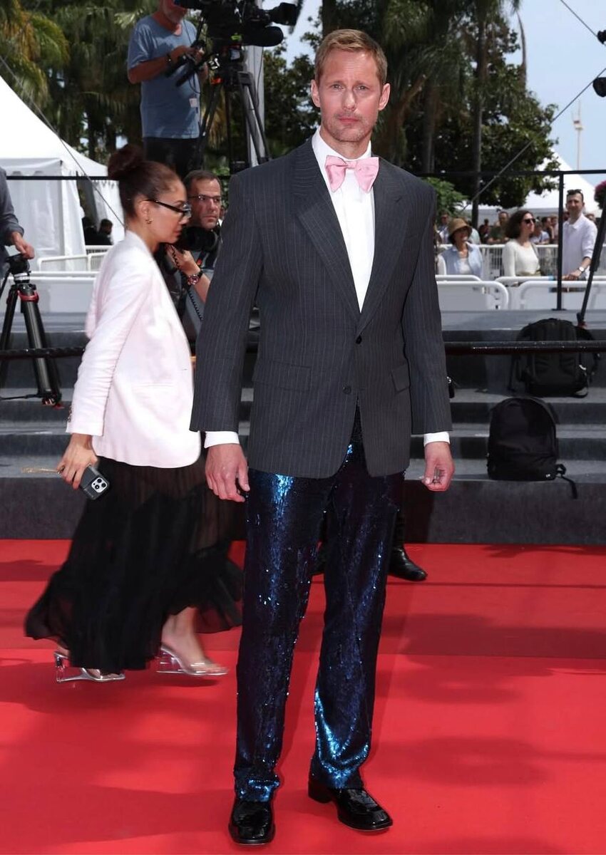В Канны в этом году Александр Скарсгард явно приехал с намерением удивлять. Во всяком случае, ему это уже второй день подряд отлично удается: вот он в сверкающих синих брюках Bianca Saunders и с огромной розовой «бабочкой» на премьере фильма «Орлы Республики». Признаемся честно, ботфорты Saint Laurent нам понравились куда больше