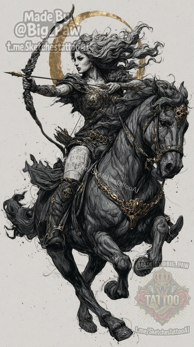 #2424 Подборка по запросу подписчика - эскиз зз Стрелец в таком стиле 🧠 SYNTX 💳 Донат 😎 НейроБро 😎 Эскизы без вотера 💀 Эскизы от нейросети #стрелец #знакзодиака #золоточб #эскизы #тату #татуировки