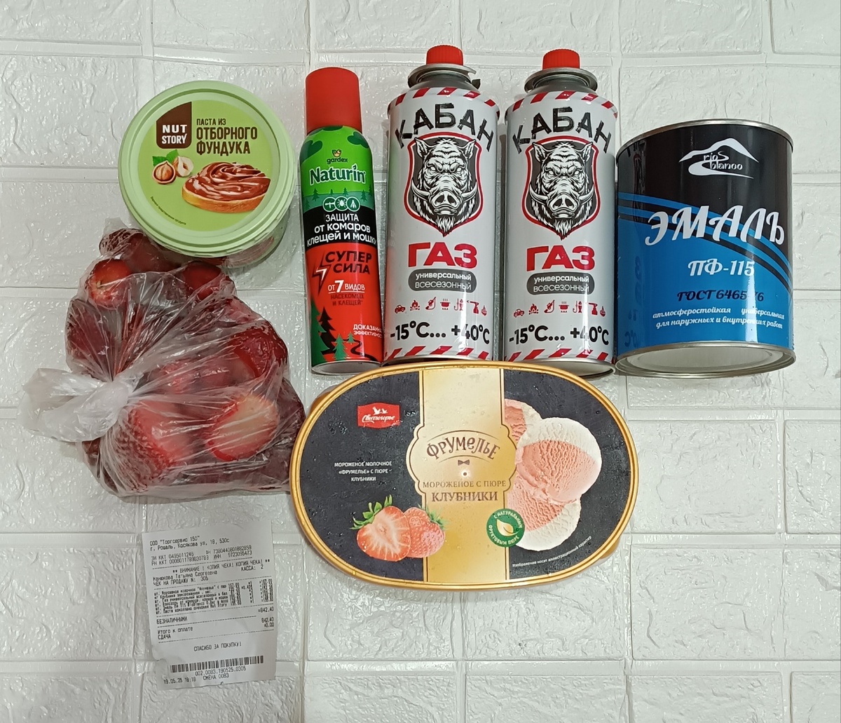 Всем привет. И снова про магазин Светофор. Покажу некоторые товары и свои покупки. Вот предыдущая статья, которая выходила несколько дней назад ( вдруг кто ещё не видел, если интересно). Сегодня я купила вот что. ⬇️⬇️⬇️⬇️⬇️ Нужна была краска, в Светофоре у неё бюджетная цена, для дачи нормально, берем уже не первый год. Надо покрасить шины-сделаем их них клумбы.Купила синюю краску как и в прошлом году. Газ тоже часто покупаем и печку разжечь на даче и уголь для шашлыка и в газовую плитку нужен. Спрей от комаров, клещей и молекулы Гвардейской покупаю в Светофоре третий год, устраивает цена и качество. Мороженое от Фрумелье люблю, оно с натуральным составом, с пюре клубники ( бывает ещё с пюре банана или манго). Шоколадная паста из фундука тоже с хорошим составом и самое главное, что без пальмового масла. Давно её к нам не привозили, как увидела сразу купила. Сестра тоже у меня её любит с дочкой. Паста эта по типо Нутеллы, только стоит в три раза дешевле. На замороженную клубнику