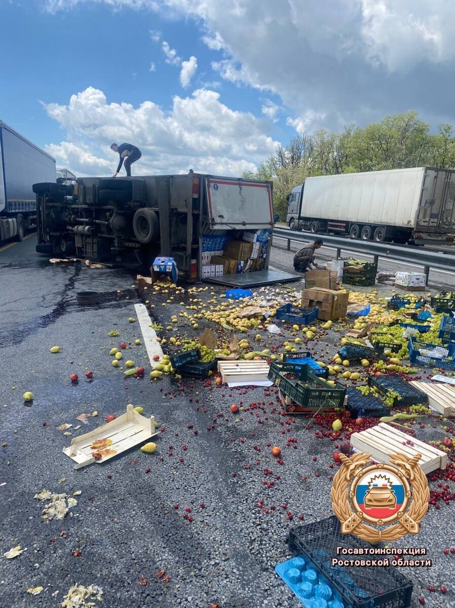 Большегруз с фруктами перевернулся под Аютой, в районе ДТП - пробка в 10 км На трассе М-4 «Дон» опрокинулся грузовик. На дорожное полотно вывалились десятки ящиков с фруктами. Как показывает сервис «Яндекс.Карты», в районе аварии образовался затор примерно в 10 км. В донской ГАИ уточнили, что при ДТП никто не пострадал. 👉🏻Новости №1 в Ростове 💌Прислать новость/фото