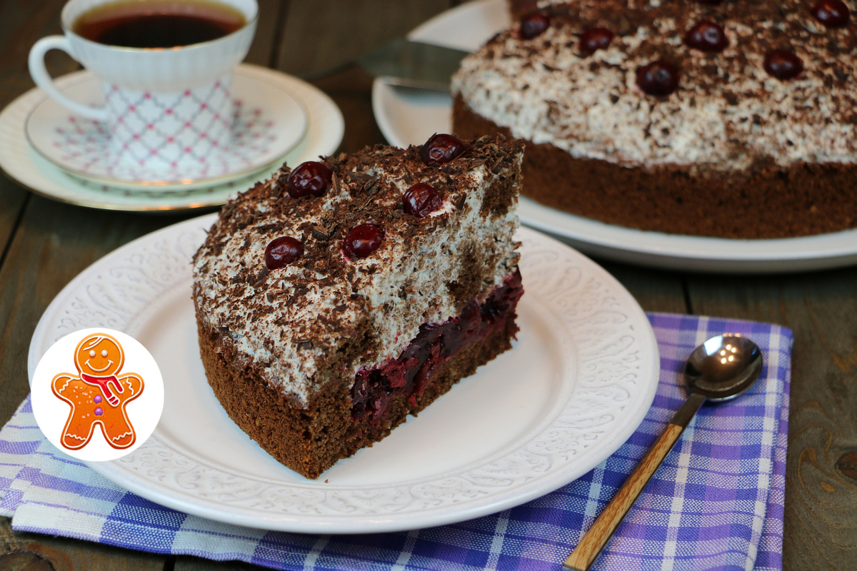 У торта статусное название, но он получается очень-очень домашним. Торт по-домашнему просто готовится, по-домашнему очень уютно выглядит. Нежный шоколадный бисквит с добавлением тёртого миндаля, прослойка из вишни и нежный крем на основе взбитых сливок. И немножко тёртого шоколада сверху. Очень вкусно! Давайте приготовим!