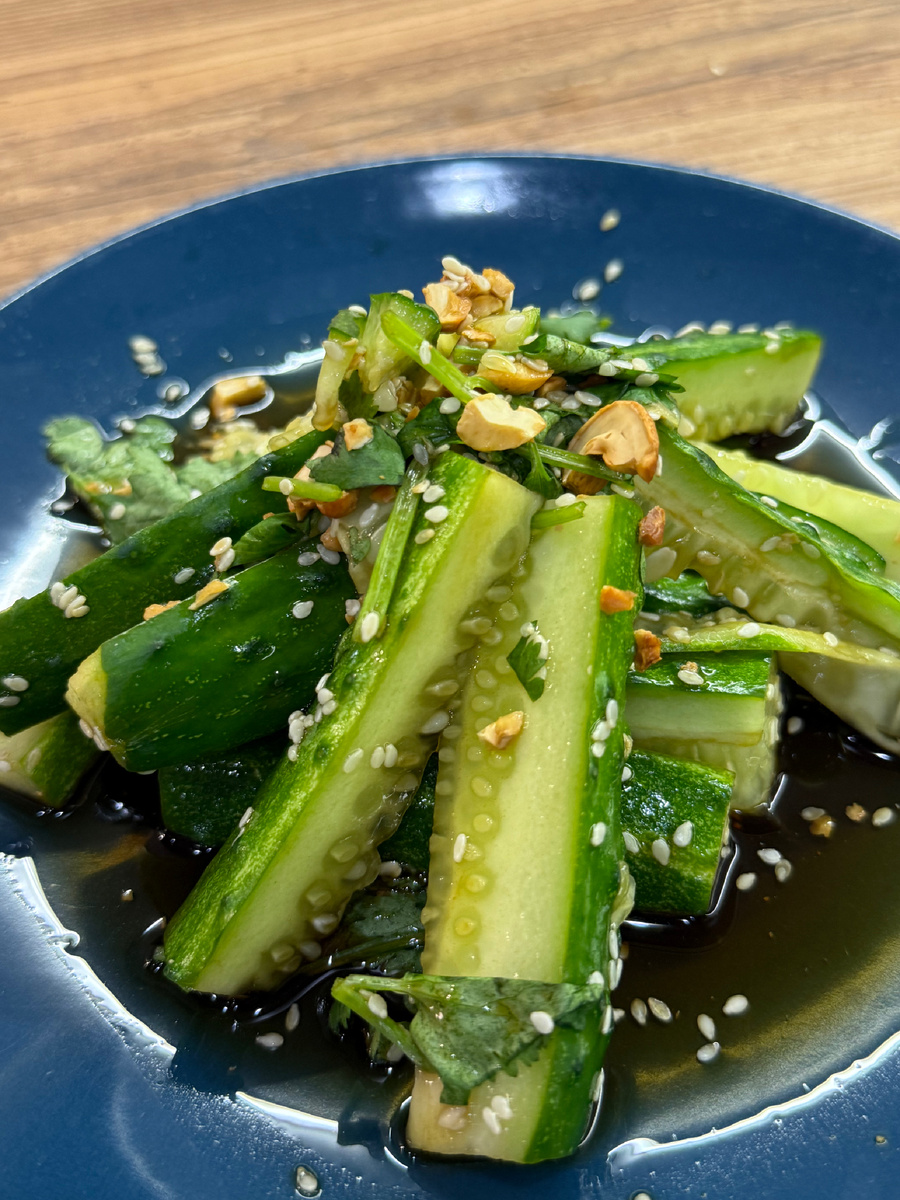 Битые огурцы: азиатская закуска, которая взорвёт ваши вкусовые рецепторы! 🥒🔥 Знаете ли вы, что самые необычные блюда часто рождаются из самых простых ингредиентов? Сегодня я расскажу вам о невероятно хрустящей закуске, которая покорила сердца гурманов по всему миру – битых огурцах! Это блюдо – настоящий взрыв вкусов и текстур, который станет настоящей находкой для вашего стола. Почему именно битые огурцы? Секрет этого блюда кроется в особой технике приготовления. Когда мы “бьём” огурцы, они приобретают уникальную текстуру – хрустящую снаружи и нежную внутри. А пикантная заправка превращает обычный овощ в настоящий кулинарный шедевр! Что нам понадобится: ● 700 г свежих огурцов – выбирайте упругие, без желтизны ● 100 мл соевого соуса – лучше выбрать качественный ● 50 г соуса сладкий Чили – регулируйте остроту по вкусу ● 4 зубчика чеснока – добавят пикантности ● Свежая кинза – для аромата ● 1 ст.л. кунжута – для хруста ● 50 г орехов кешью – для завершающего штриха Как приготовит