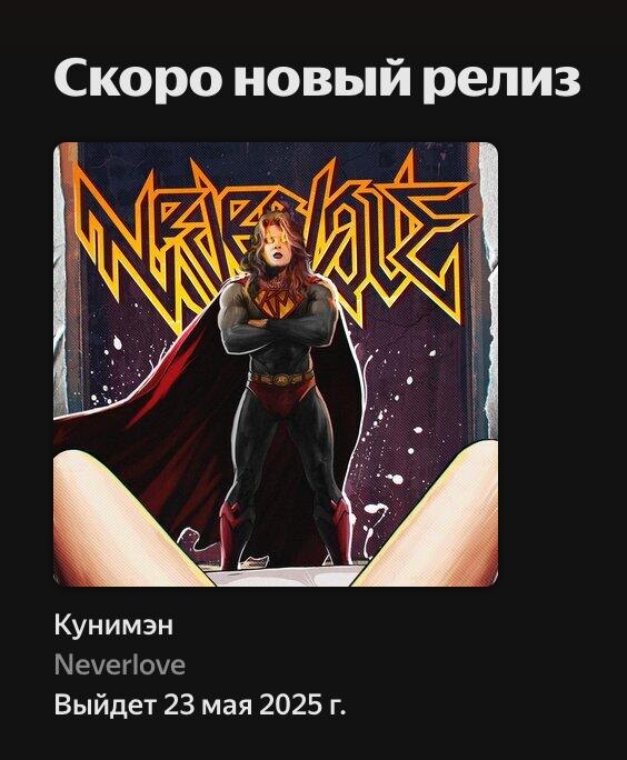 🎵 👅 В Яндекс.Музыке появился пресейв к новому синглу группы Neverlove «Кунимэн» Трек выйдет на площадках в эту пятницу — 23 мая. 🌭 — забрал обложку месяца 😈 — а сниппет будет? @mainstreamusic