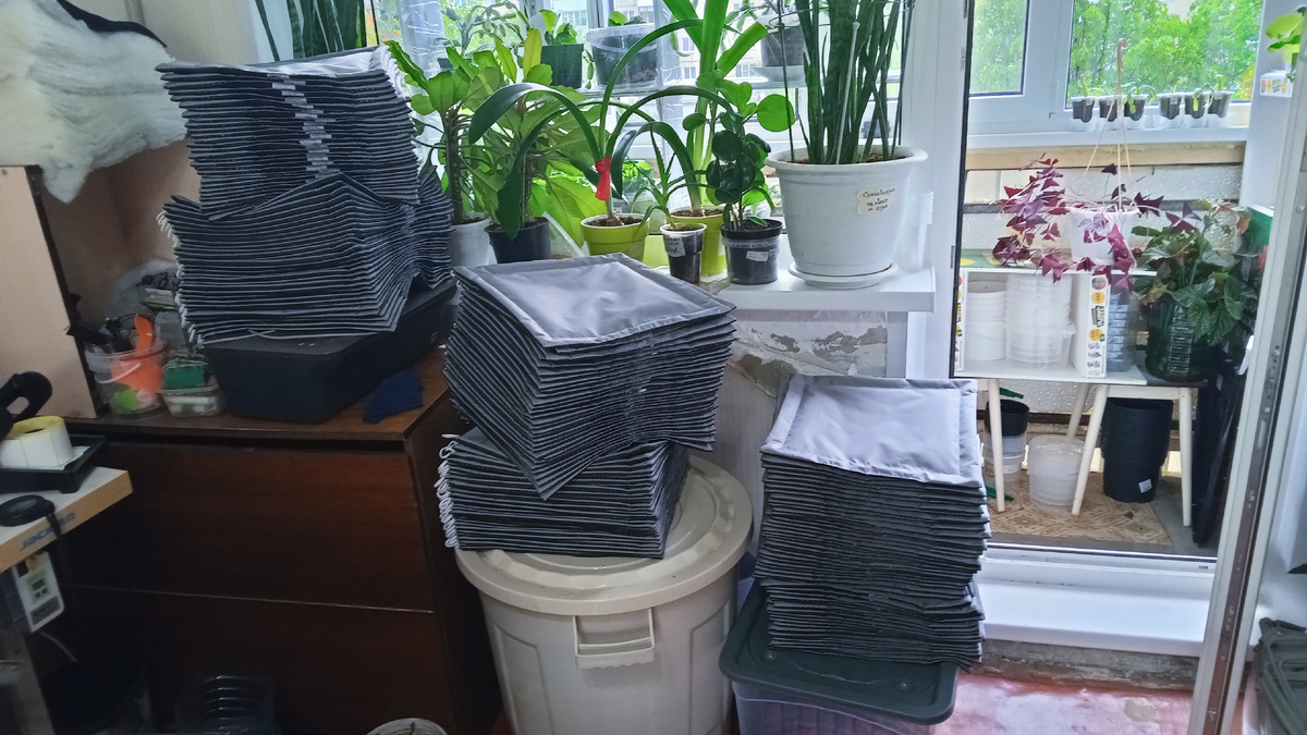 В планах у меня было: монтаж освещения на овощном стеллаже и посев огурцов и других овощей. А также сшить и отвезти в цех серые коврики. Я чуток не успела. Везде опаздываю. Вчера, в воскресенье, к 16 часам отвезла обещанные 200 ковриков. На руках у меня оставалось стольник с хвостиком. По факту 175 штук. И я опять не успела. Закончила их шить к 17 часам.