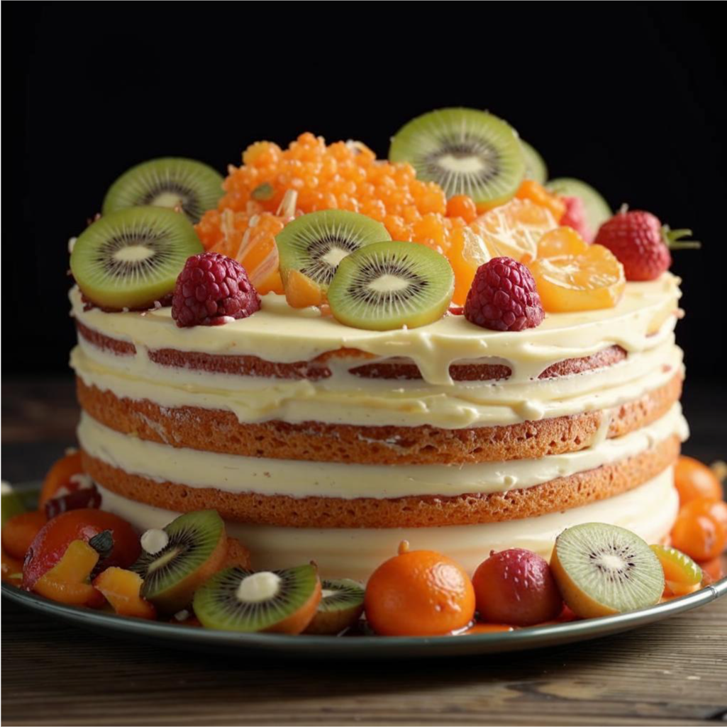 Калорийность: 283 ккал Ингредиенты для теста: · Сметана - 200 г · Маргарин - 100 г · Сода - 1/2 ч.л. · Сахар - 1/2 стакана · Мука - 2-2,5 стакана Ингредиенты для крема: · Сметана (20-25% жирности) - 250-300 г · Сахар - 100-150 г Ингредиенты для начинки: · Мандарины - 2 шт. · Киви - 1 шт. · Ананасы консервированные - 150 г · Или другие фрукты по вкусу Приготовление: 1. Для теста взбейте размягченный маргарин с сахаром, добавьте сметану. 2. Всыпьте муку с содой (соду можно не гасить, так как сметана погасит её сама). 3. Замесите эластичное тесто и разделите его на 4 части. 4. Каждую часть раскатайте в лепешку толщиной 1-1,5 см. 5. Выпекайте в разогретой до 200°C духовке около 10 минут. 6. Для крема взбейте жирную сметану с сахаром до пышности. 7. Когда коржи остынут, начинайте сборку торта: · На первый корж нанесите сметанный крем · Выложите слой мандаринов · Покройте кремом · Накройте вторым коржом · Повторите слои: крем, ананасы, крем 8. Продолжайте
