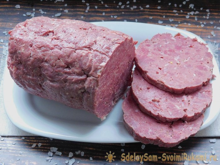 Мало кто может похвастаться, что умеет готовить колбасы и ветчину, не уступающую по вкусовым качествам магазинной. Оказывается, это весьма несложно сделать в домашних условиях. При помощи нитритной соли и нехитрого набора специй удастся получить тот самый вкус, только без внесения многочисленных химических добавок. И не стоит бояться присутствия нитритной соли, в небольших количествах она не наносит абсолютно никакого вреда. Так что сегодня готовим ветчину из говядины. Она нежная, сочная и ароматная. Подготовить все необходимое. Мясо выбирать мягкое, можно с небольшим количеством жировых включений. Нарезать говядину на тонкие длинные полоски, чем тоньше, тем лучше. Для удобства мясо можно слегка подморозить. Добавить оба вида соли, нитритную и каменную, сахар, смесь перцев. Мускатный орех натереть на терке или использовать уже готовый молотый. Выложить измельченный чеснок, перемешать. Переложить в мешок или рукав для запекания и отправить в холодильник на 12-24 часа. По прошествии врем