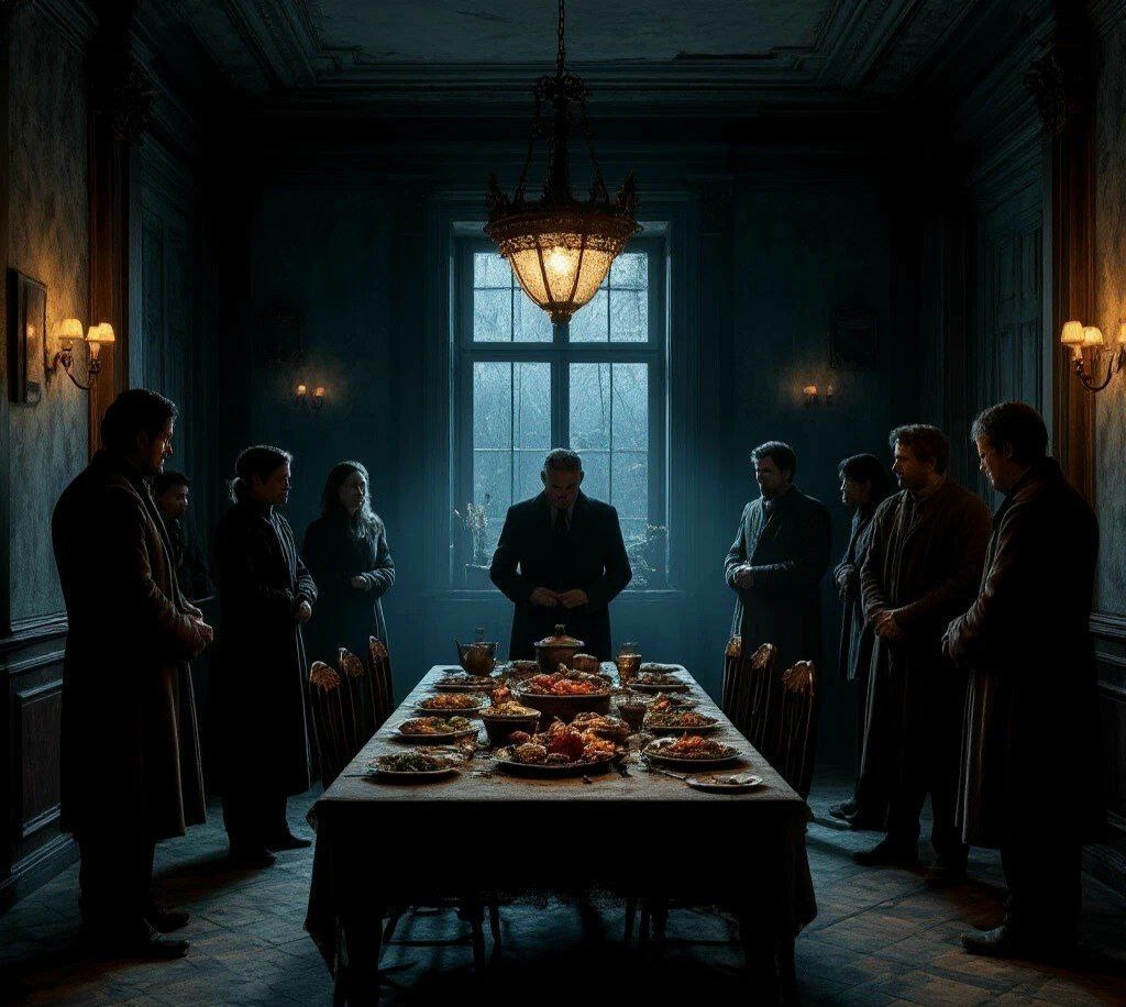 Я переехал в этот дом в ноябре. Глухой район, панельные многоэтажки, серое небо, редкие прохожие. Меня всё устраивало: дёшево, тихо, и соседей почти не видно. Почти. Первые недели ничего странного. Обычный быт, работа, сон. Пока однажды ночью я не проснулся от странного звука — будто кто-то скребётся. Тихо, размеренно, как ложка по тарелке. Я выглянул в окно: напротив, в окне кухни моих соседей — тусклый свет и движение. Они ели. Двое, возможно — муж и жена. Я заметил, что сидят абсолютно неподвижно, а движение идёт только от рук, подносящих вилку ко рту. Утром на лестничной клетке было пусто. Я подумал — глюк, переутомление. Пока на следующий день не услышал то же самое. И не выглянул снова. Теперь я видел отчётливо: лица у них были… размыты. Будто кто-то стер черты, как на старой фотографии. Гладкая, светлая кожа, пустая, без глаз и рта. Но они продолжали есть. Руки механически поднимали столовые приборы, и с тарелок исчезала еда. Я начал расспрашивать соседей. Молчание. Один старик