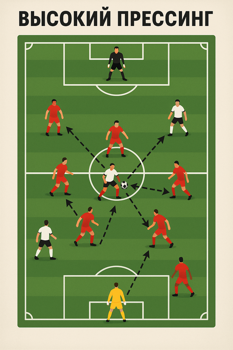 В современном футболе высокая линия обороны — не риск, а оружие. Высокий прессинг (high press) — это агрессивная попытка отобрать мяч на чужой половине поля, не дать сопернику начать атаку и вынудить ошибиться под давлением. Он требует идеальной координации, высокой физики и тактической дисциплины. В этой статье разберём: