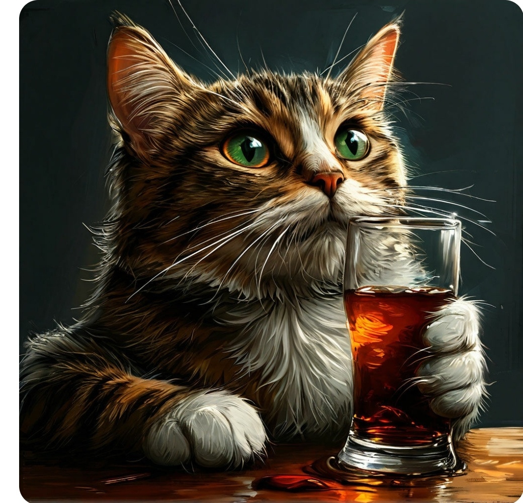 Был у одного моего друга кот, по кличке Кабан. За дело прозвали, здоров был чертяка, и нахален жутко. Сидим у товарища, значит, пиво пьем, телевизер зырим. А Кабан че-то пристает, мявкает басом своим, рожу ко мне тянет, хочет от меня чего-то: - Слушай, чего ему надо, а? - спросил я - Пива хочет... - отвечает друг. - Он у тя пиво пьет??? - Ага, но тока Хольстен почему-то, потому к тебе и пристает. - Да ты гонишь!!! - Ну, налей ему в крышечку, сам увидишь…- и протягивает мне крышку от пластиковой бутылки. Аккуратно наливаю, ставлю перед Кабанюкой, а он, гад, отворачивается… - Ну и чего? - спрашиваю - Он пузырьки не любит, щас выветрится, потом выпьет. И действительно, через пару минут Кабан важно подошел, покосился на меня, понюхал выставленное ему пиво и вылакал его. И тут же потребовал еще. Заказ был исполнен сей момент, разве такому откажешь? После четвертой Кабан стал требовать добавки как-то совсем уж нахально, лапой толкая меня в ногу, и невразумительно мявкая. Причем пиво пил