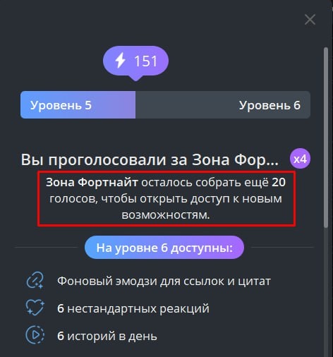 ⭐ Еще 20 буст-голосов за канал и мы перейдем на 6 уровень!