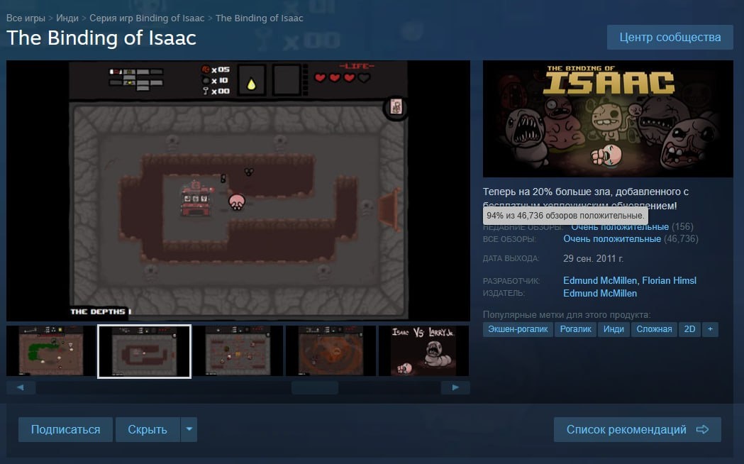 Годнота по цене кириешек: в Steam стартовала жирнейшая скидка на рогалик The Binding of Isaac игру можно урвать за жалкие 29 рублей
