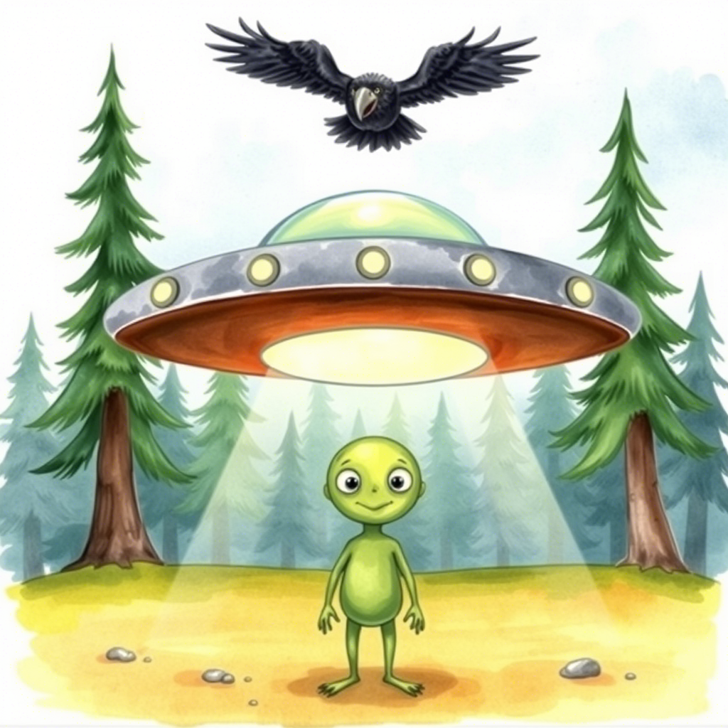 - Он! Точно! – охнула тетушка Перепёлка, - Инопланетянин! Мы когда были около деревни, я у людей в окне увидела телепередачу про летающие тарелки, инопланетяне на тарелках летают! Так там сказали. А тарелки-то бьются! Вот наш – тетушка кивнула в сторону пришельца – без тарелки и остался.