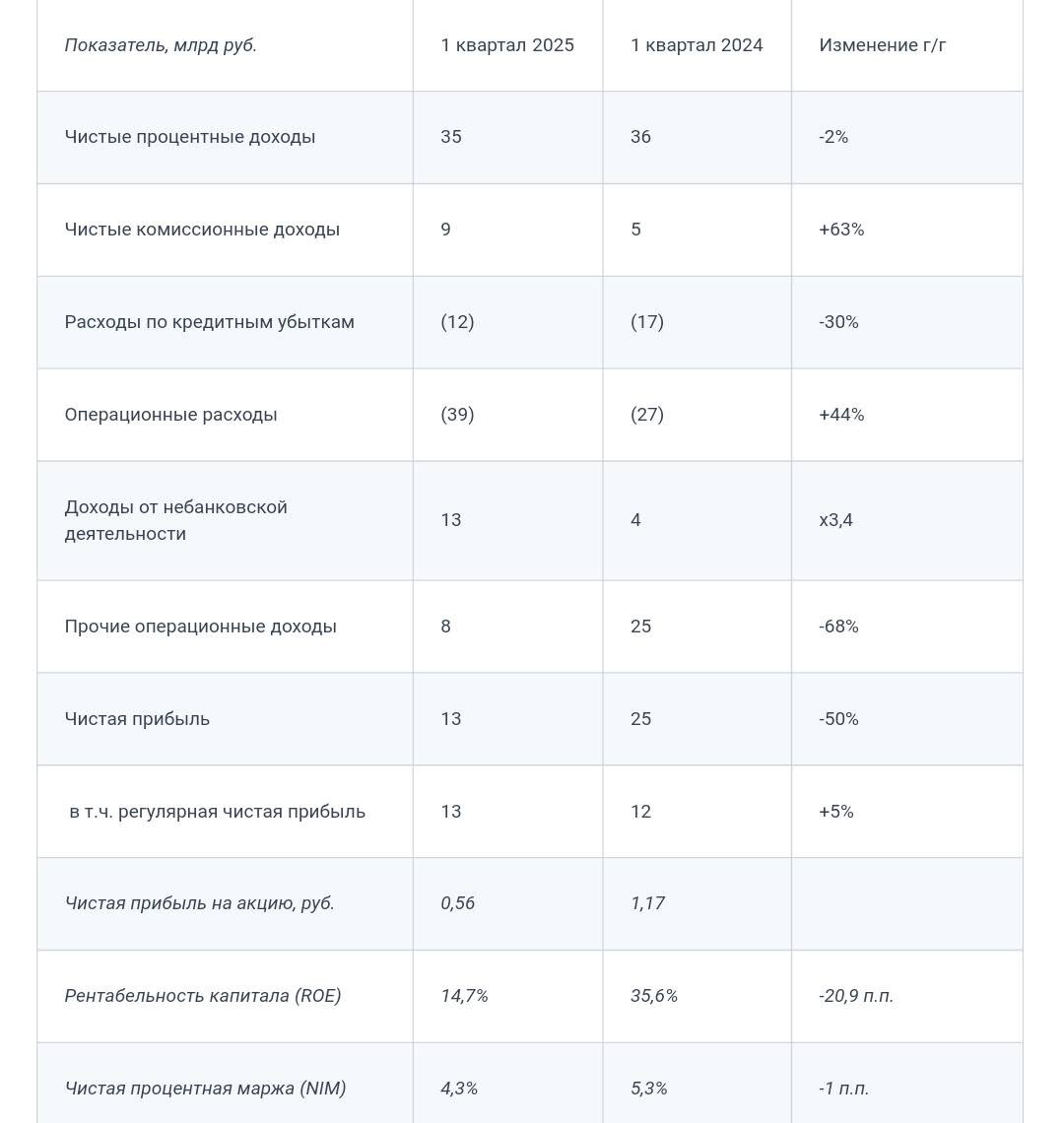 🏦 Совкомбанк ($SVCB) – Эффективность падает, но идея остаётся. Отчёт за 1 кв. 2025 г.