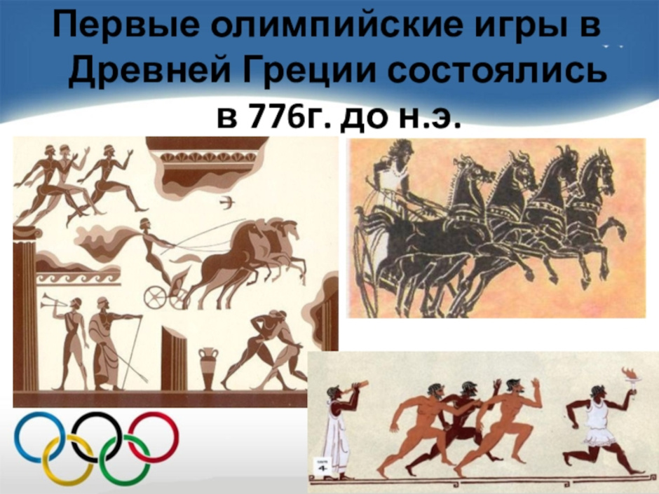 Первые упоминания об Олимпийских играх связаны с древней Грецией, где они проводились в честь Зевса в священном месте — Олимпии. Согласно историческим источникам, первые Олимпийские игры были организованы в 776 году до н.э. и с тех пор стали одним из важнейших религиозных и культурных мероприятий. Олимпийские игры в древней Греции были не только соревнованиями спортсменов, но и религиозным праздником, объединявшим греческий народ в единое культурное пространство.