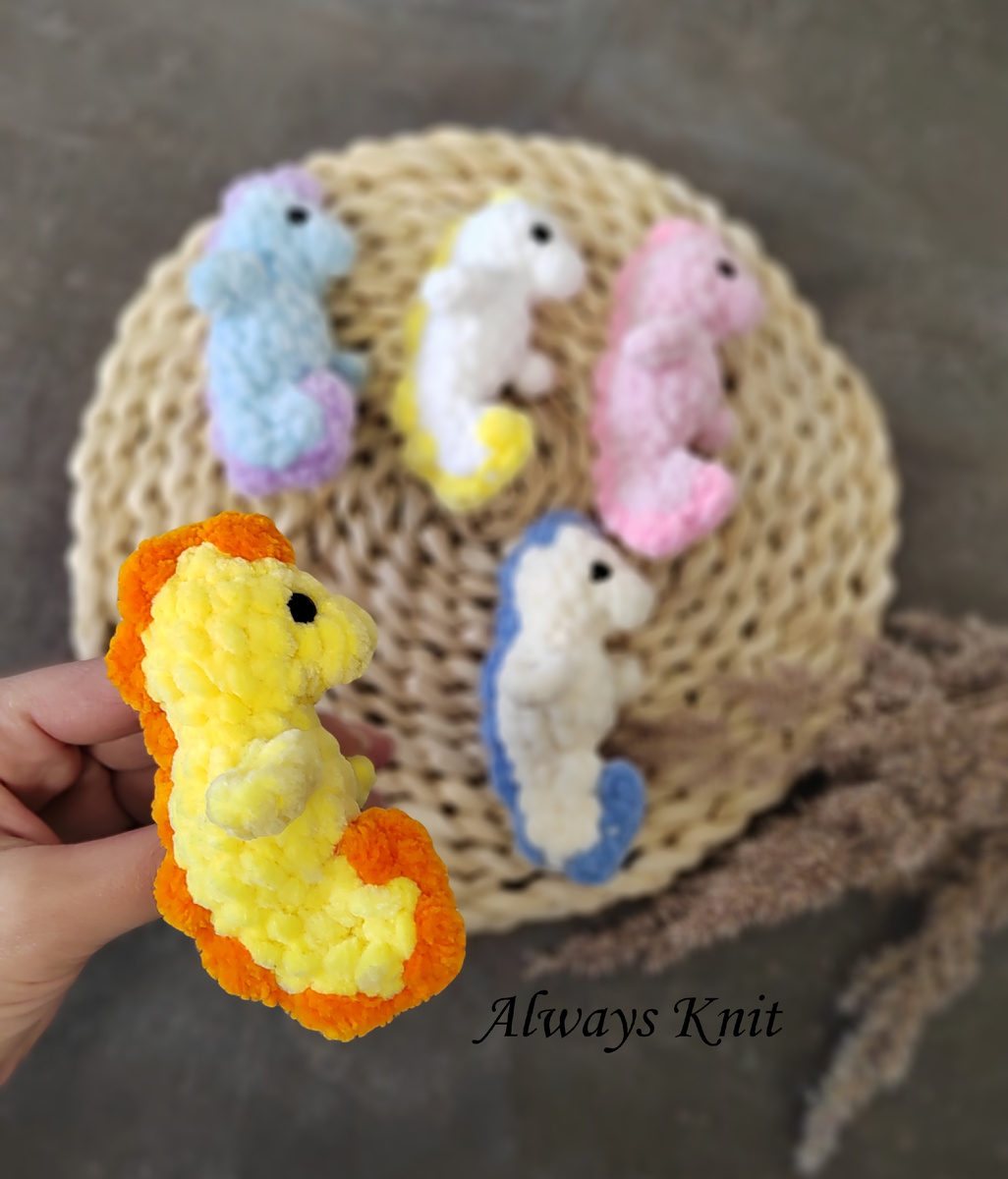 Захотелось чего-то нового и необычного, что ни разу не вязала. Глаз упал на этого милого морского конька. Описание на английском языке, но я сделала перевод) Вначале будут фото моих коньков 🩷 Теперь оригинальное описание с автором на скрине Ну а теперь сам перевод)