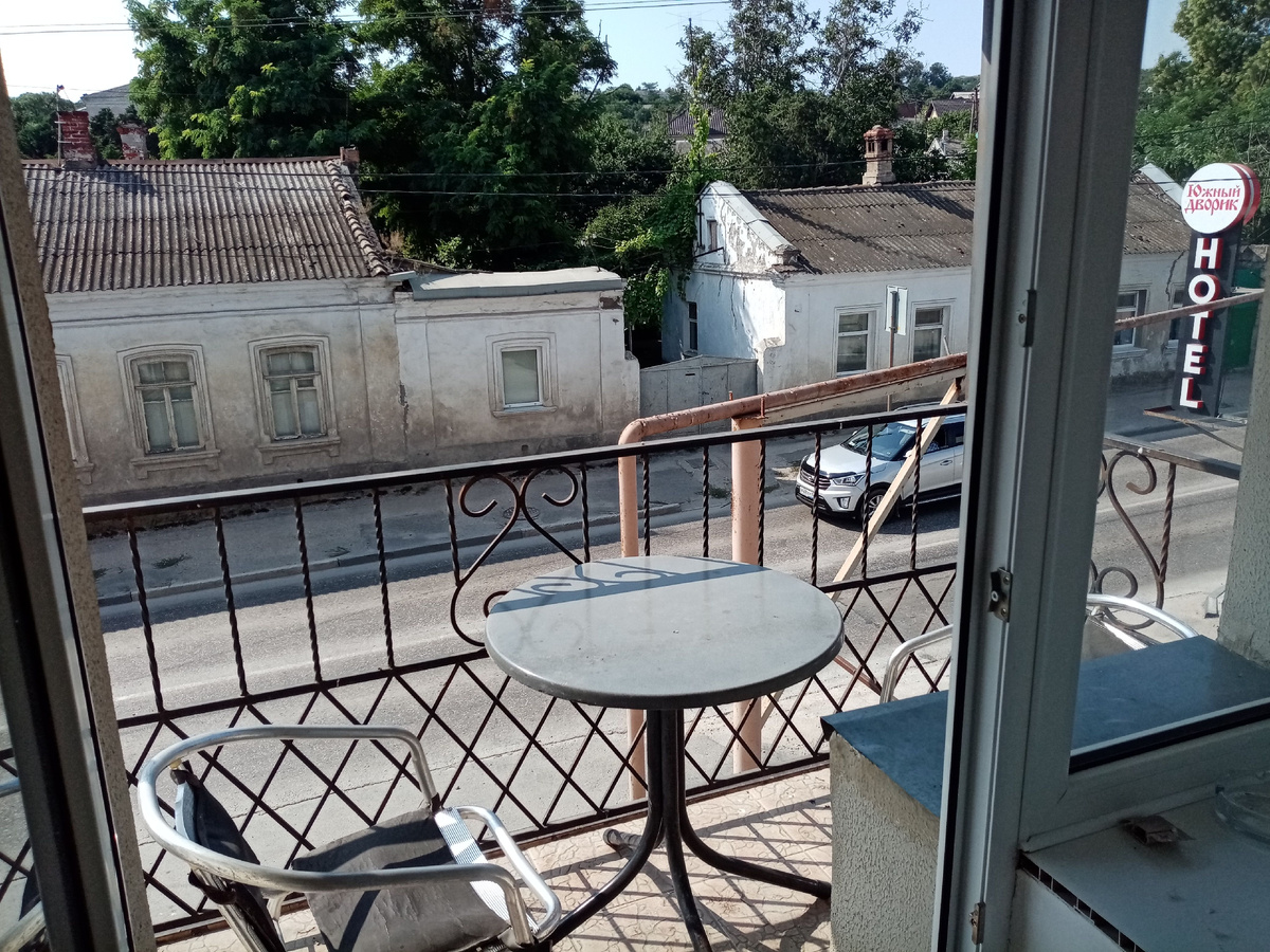 🌠 Приютил нас небольшой отель на одной из центральных улиц города. Можно сказать он удачно встретился на нашем пути. Приятной опцией стал миниатюрный балкончик. Вечером на нем устроили чаепитие из остатков провизии. Так в нескольких словах опишу наше первое появление в Керчи одним из летних дней 🌞