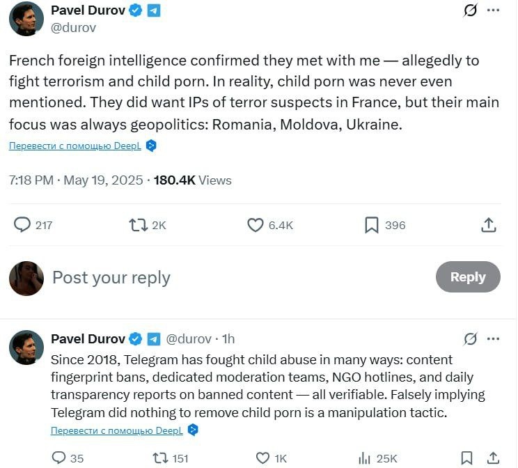 Спецслужбы Франции прикрывались борьбой с терроризмом, но на самом деле хотели повлиять на ситуацию в Румынии, Молдове и на Украине, — Павел Дуров