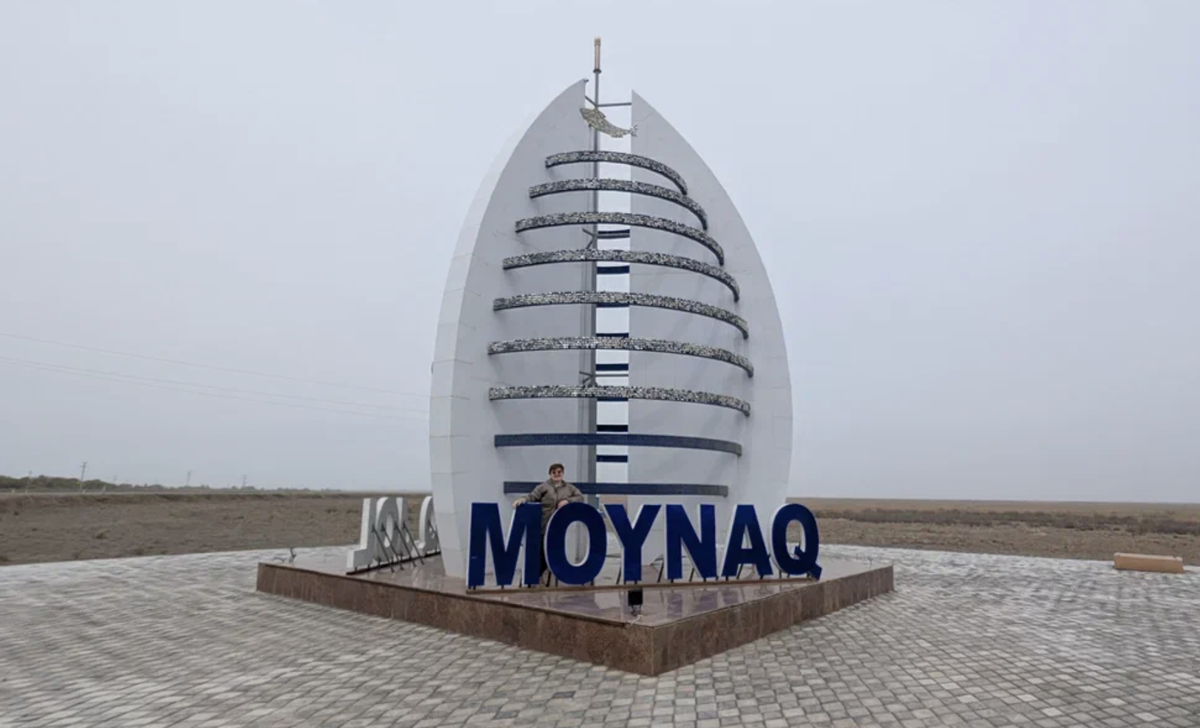 Этот город построили на берегу моря для рыбаков. Здесь был рыбоконсервный завод, прекрасные пляжи, гавань. А потом море исчезло - ушло, испарилось, осталась от него только солёная пустошь. До сих пор на въезде в город среди голой пустыни стоит символ города - паруса. Город строился в 30-е годы прошлого века, поэтому его улицы широки, как в песне "Широка страна моя родная" Столбы украшены узорами, которые наверняка красиво подсвечивают в темноте: Город малоэтажный, дома в основном в 2 этажа. Очень длинные дома - не остались ли они от тех времен? А вот мечеть здесь - явно новострой: В городе есть башня с часами: И неухоженный мемориал землякам, погибших в войне: Неухоженный, потому что везде лежала какая-то штукатурка, обломки камня. Монумент сделан в местном стиле, с деревянными резными колоннами, которые также часто используют в мечетях: Но самая интересная достопримечательность - это литературный парк: Это довольно большая территория перед административным здание, очень ухоже