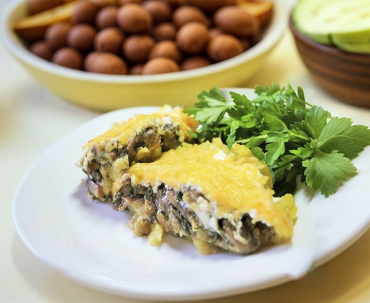 Сочная, ароматная запеканка с грибами и сыром – идеальное блюдо для уютного ужина.