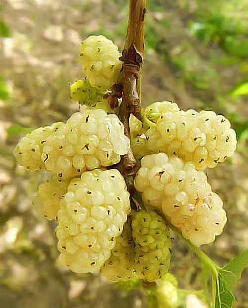Сорт шелковицы "Медовая" - относится к высокоурожайным и среднеспелым, способным в середине лета порадовать крупными сладкими ягодами (5-10 г). Высота взрослого дерева достигает до 10м. Крона у него - раскидистая, густооблиственная, ствол и нижние ветви - окоренные. Шелковичное дерево характеризуется хорошей морозоустойчивостью, выдерживая до -35°C, поэтому может свободно выращиваться в регионах средней полосы. Оно отличается высокой декоративностью и устойчивостью к грибковым заболеваниям. Зацветает тутовник в апреле, ягоды созревают в июле. Спелые плоды имеют белый окрас, их плотная сочная мякоть - деликатный вкус. При хорошем уходе и правильной обрезке, «Медовая» способна давать до 100 кг ягод шелковицы. Высадив на участке шелковицу «Медовая», вы не только сможете ежегодно получать большой урожай вкусных витаминных ягод, но и украсить свой сад красивым деревом. Придав с помощью художественной обрезки его кроне шаровидную или пирамидальную форму, использовать в ландшафтном дизайне дл