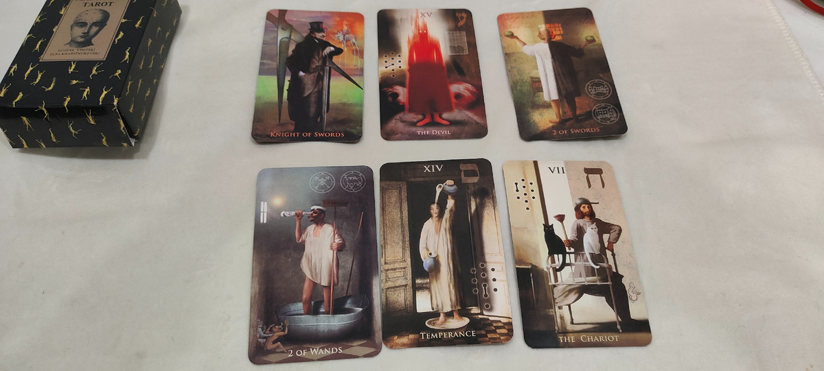 Сегодня на раскладе выпал Король Мечей. Это холодный и закрытый мужчина , очень хорошо сдерживающий себя , и всегда взвешивающий любые свои действия и проявления , прежде чем что то делать. К его ужасу и растерянности внутри него сейчас бушуют не шуточные страсти по отношению к девушке. Он не очень понимает , как так вышло , что для него всегда сдержанного и контролирующего себя человека чувствовать сейчас Вот Такое. А страсть и притяжение к вам носит нешуточный такой характер , поскольку выпала карта Дьявол. Здесь есть и очень сильное желание близости и сформировалась уже довольно сильная привязанность и зависимость от Вас. Но что то между вами не все так просто , ситуация совсем неоднозначная, есть различные ограничения и всяческие Нельзя и Неприлично , вследствие чего ему приходиться с огромным трудом сдерживать свои любовные эмоции к вам , сохранять покер фейс, и стараться вообще не дышать лишний раз и не смотреть в Вашу сторону, дабы не сорваться. И чем больше он держит себ