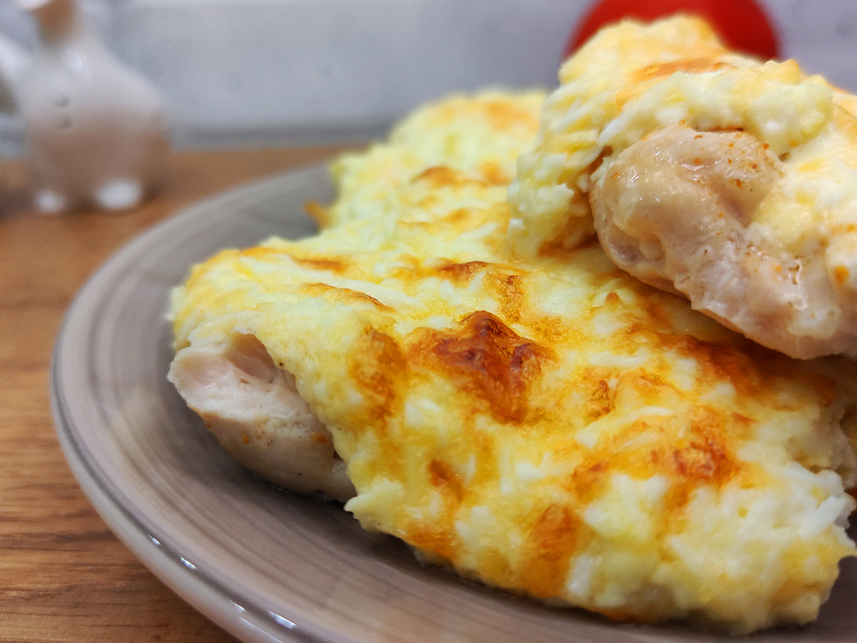 Иногда рецепт буквально сам находит тебя. Так и случилось с этим филе по-царски — увидела его случайно, приготовила из интереса, а теперь он стабильно появляется у нас на столе хотя бы раз в неделю. Почему? Потому что это просто, быстро и действительно вкусно. Мясо получается сочным, мягким, с румяной корочкой и ароматной заливкой. Его можно подать и на обед, и на ужин, и даже на праздничный стол — всегда в тему. Особенно выручает, когда хочется сытного, горячего, но нет сил стоять у плиты часами. Кто пробовал — все хвалят. Делюсь проверенным рецептом. Рецепт: Приготовление: Куриную грудку нарезать средними кусочками или отбить в форме пластов — как удобнее. Посолить, приправить по вкусу. Натереть сыр на крупной тёрке. Отварить куриные яйца и натереть на мелкой терке, смешать все ингредиенты в миске, сметану, майонез и сыр. Выложить филе в форму для запекания, сверху залить яично-сметанной смесью. Запекать в разогретой до 180 градусов духовке 30–35 минут. Совет: если хочется более