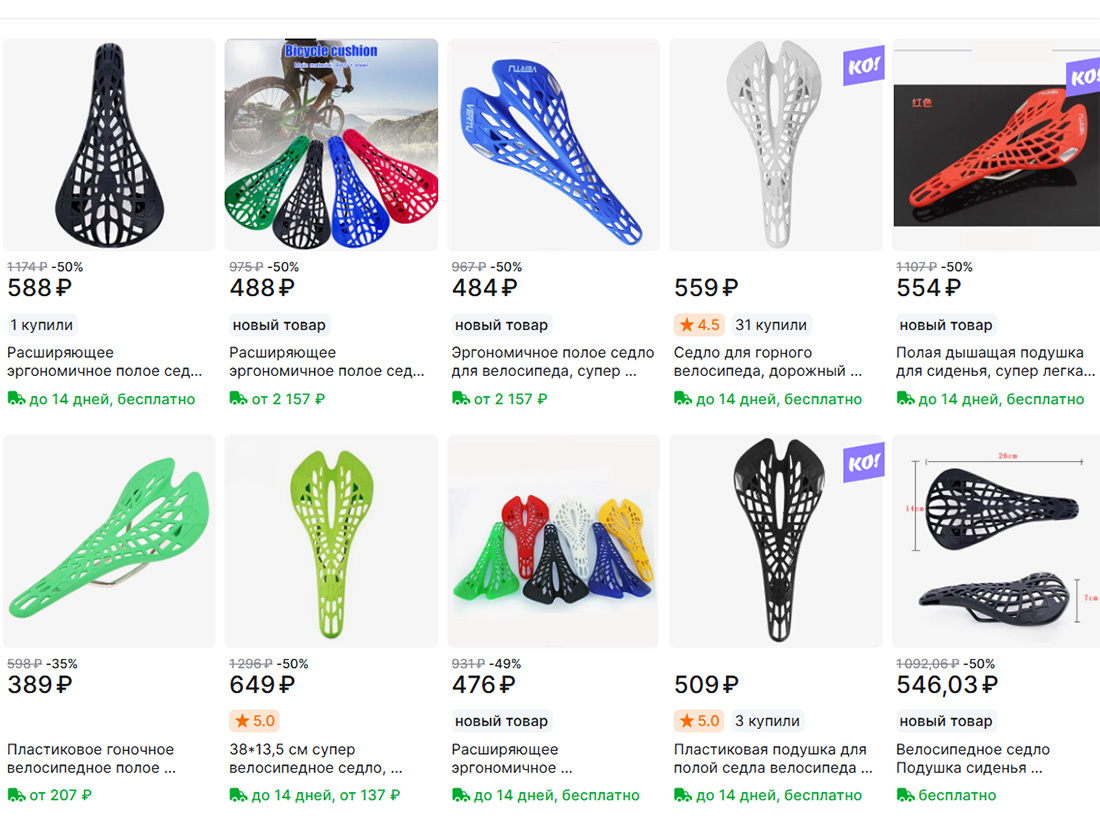 Если вы смотрели велосипедные сёдла на AliExpress, то не могли не заметить красивую, эффектно выглядящую модель. Она привлекает внимание, т.к. имеет необычную ажурную форму, представлена в нескольких ярких цветах, стоит весьма бюджетно, и кроме того, заявлен небольшой вес. Сложно удержаться от покупки! Вот и я приобрёл такое седло, своего любимого красного цвета, про запас. Так оно у меня и лежало пару лет, пока не настал его «звёздный час» (причём, «час» практически в буквальном смысле). Дело в том, что при сборке нового велосипеда обнаружил, что купил седло с овальными рейлингами, а на подседельном штыре – крепление для круглых. Кто бы мог подумать, что в 25м году карбоновую шоссейную раму укомплектуют подседелом с креплением под круглые рейлинги! Продвинутые велосипедисты, конечно всё это знают, но для менее опытных поясню. Рейлинги – это «рельсы» внизу седла, по которым его можно двигать вперёд-назад, перед тем как зафиксировать. Это нужно чтобы можно было выставить комфортную поса