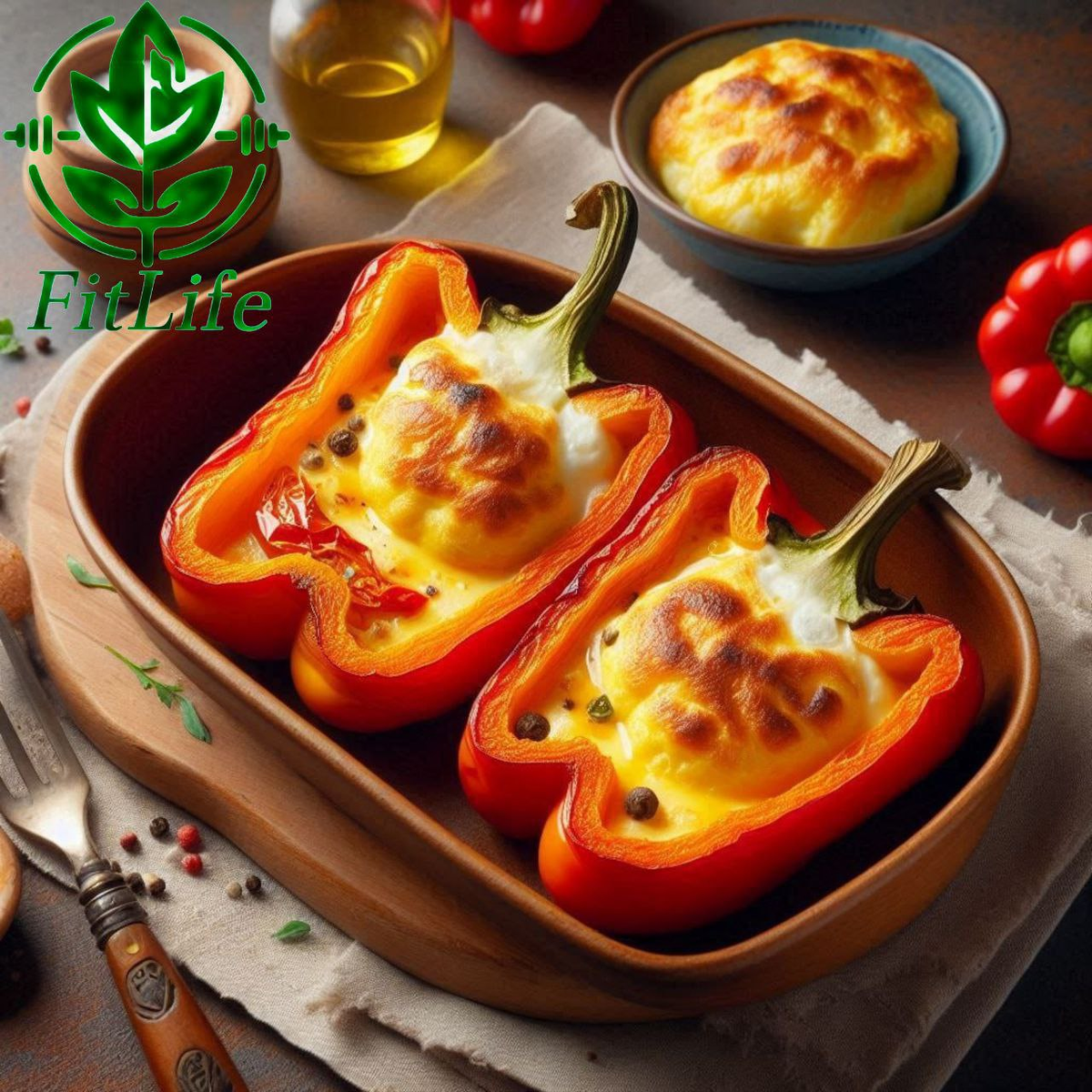 В запеченный перец влейте яичную смесь, верните в духовку и запекайте еще 10 минут, не изменяя температуру. 🔥