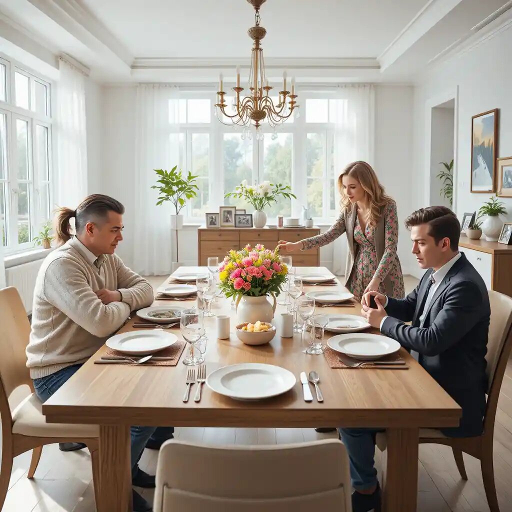 Квартира была чище, чем обычно. И тише. Алексей стоял на кухне, нервно поправляя скатерть.