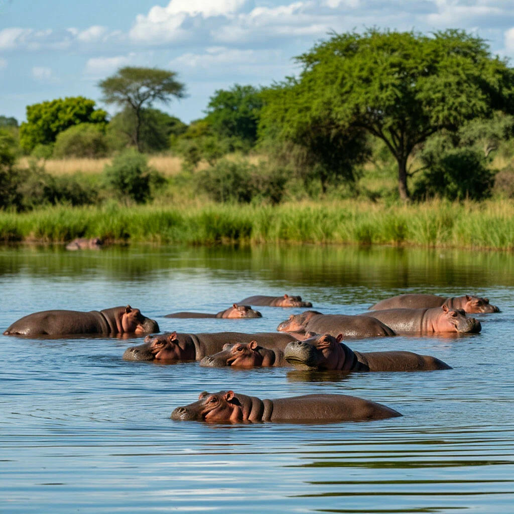 Лодка плавно скользила по зеркальной глади озера, оставляя за собой пенный след. По берегам простирались заросли папируса и акаций, в которых то и дело мелькали силуэты птиц и мелких животных. Константин, управляя лодкой, рассказывал о местной фауне, о птицах, обитающих на озере, и, конечно же, о бегемотах, ради которых они и отправились в это путешествие.