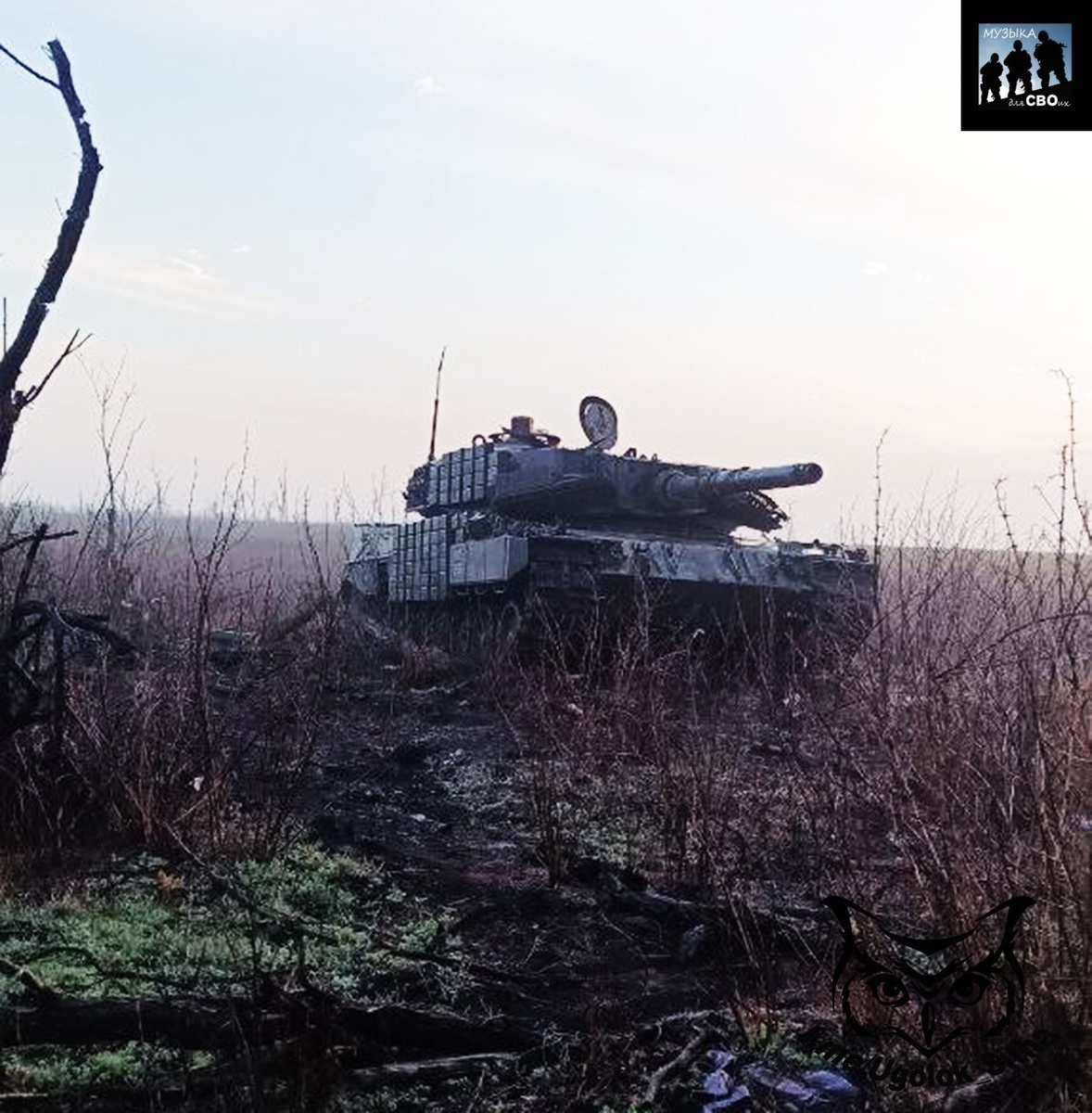В окрестностях Работино очередной немецкий Leopard 2A4 решил сменить амплуа и попробовать себя в роли неподвижной садовой скульптуры.
