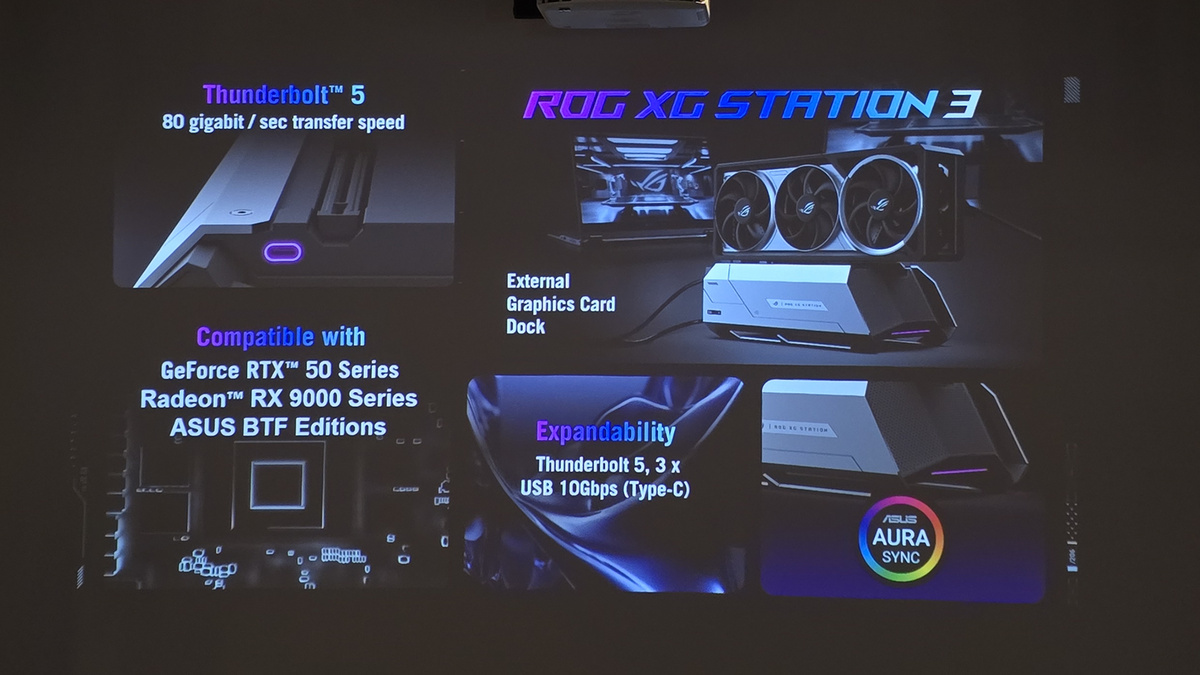 Asus показала на выставке Computex новую док-станцию ROG XG Station 3, которая использует возможности Thunderbolt 5 для подключения настольных видеокарт, сообщает OC3D.