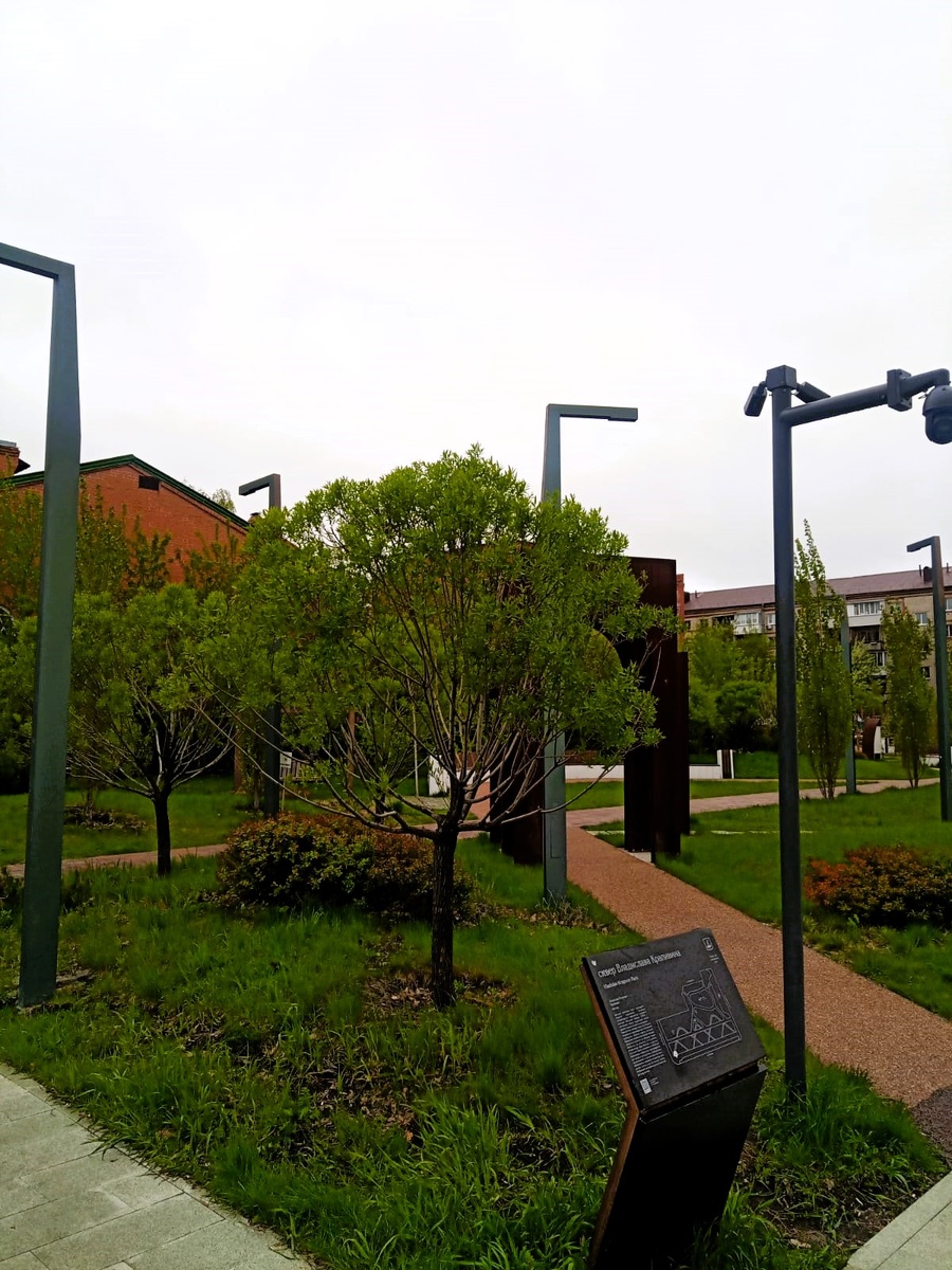 Вот такая у меня была книга... Оформление сквера перекликается с тематикой произведений Крапивина: дорожки и искусственные рельефы имеют волнообразную форму, скамьи повторяют радиус морской волны. У входных групп расположены арки, на которых выгравированы цитаты из произведений автора.