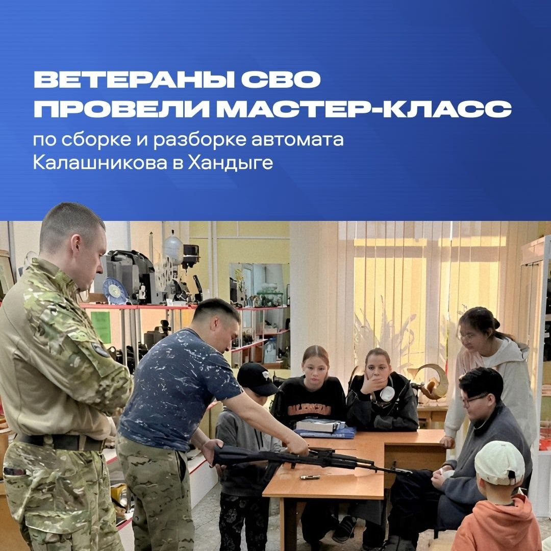 В историко-краеведческом музее поселка Хандыга прошла акция «Ночь музеев». В этом году она была посвящена теме «Герои». На организованной выставке «Герои нашего времени: мастерство и отвага» показали личные вещи ветеранов, предварив познавательной информацией. Особый интерес, особенно школьников, вызвал мастер-класс по сборке и разборке автомата Калашникова, который провели ветераны боевых действий Вячеслав Канаев и Дмитрий Ромашко. Завершилась встреча песнями Победы.