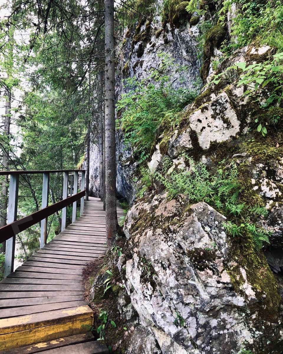 По пути у вас будет несколько мест, откуда можно полюбоваться рекой Серга и скалами, которые её окружают, но самое главное, что на этом маршруте находится одна из главных жемчужин парка — Пещера Дружбы. В самой пещере вас ждут сталактиты и сталагмиты, которые создают волшебную атмосферу.