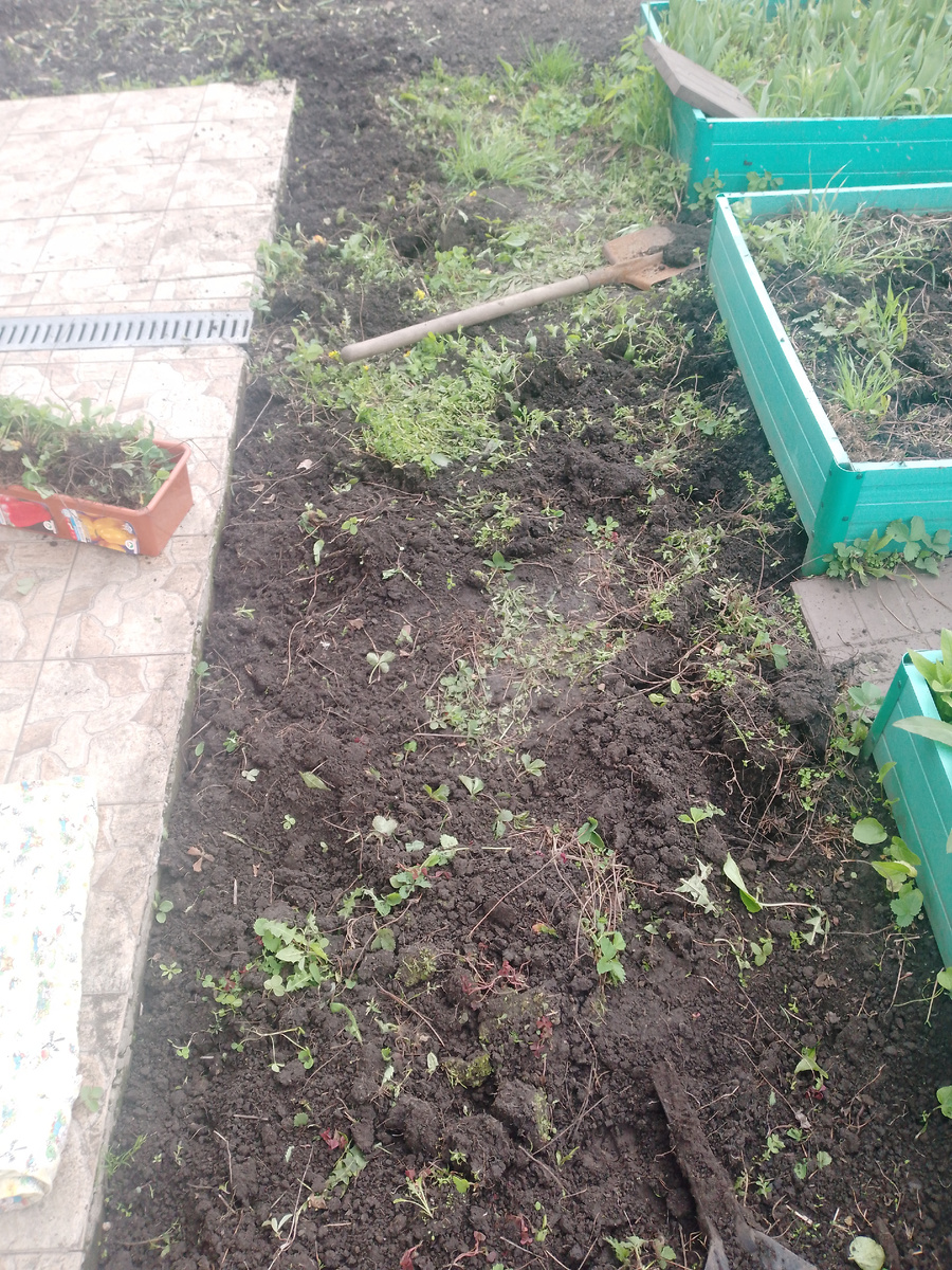 Пересаживаем Викторию. Очень муторное и времязатратное занятие. Все корни и сорняки выбирала, чтобы накрыть спанбондом.