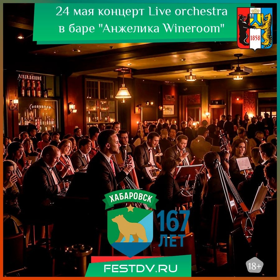 Музыкальная ночь с Live orchestra в баре «Анжелика Wineroom» — чувственный вечер в ритме мировых хитов Дата и время: 24 мая, 21:00 Место проведения: г. Хабаровск, ул. Муравьёва-Амурского 36, бар «Анжелика Wineroom» Стоимость: 550₽ Телефон для справок: +7 (4212) 25-11-11 Вечер 24 мая в баре «Анжелика Wineroom»… #фестивалим #хабаровск #вхабаровске #отдыхдв https://festdv.ru/meropriyatiya/kalendar-sobytij/24-maya-konczert-live-orchestra-v-bare-anzhelika-wineroom/