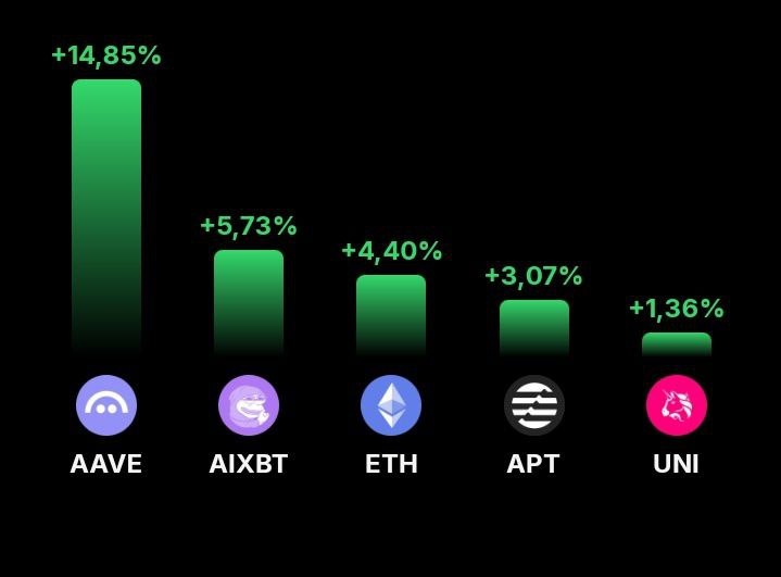 Монета AAVE начала рост в этот день прямо с утра 📈 около роста 14%