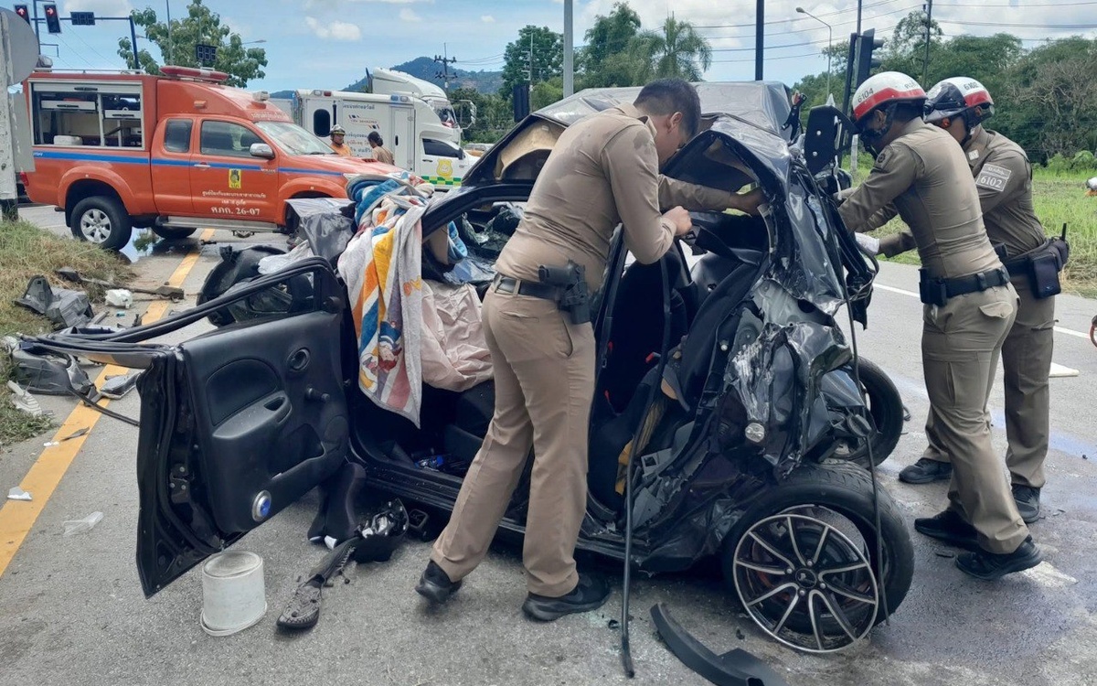 Четыре человека пострадали в ДТП с участием грузовика в провинции Пханг-Нга Полиция подтвердила отсутствие погибших в аварии на национальной магистрали No.4 в провинции Пханг-Нга, где двигавшаяся на высокой скорости фура протаранила два автомобиля, ожидавших зеленого света на светофоре в населенном пункте Калай (локация). Официальную сводку с места событий на Phetkasem Rd. опубликовала полиция скоростных магистралей. Ближайшее ее региональное отделение находится также на Phetkasem Rd. и отвечает за три провинции – Пхукет, Пханг-Нга и Краби. Инцидент произошел в районе полудня 19 мая и вызвал широкий резонанс после публикации видеозаписи момента аварии в социальных сетях. Грузовик врезался сзади в легковой автомобиль Nissan March, зажав его между собой и стоявшим впереди пикапом неуказанной модели. Спасателям пришлось применить гидравлические инструменты, чтобы извлечь людей из того Nissan’а, но в больницу все пострадавшие были доставлены живыми. Не затормозивший перед Т-образным п