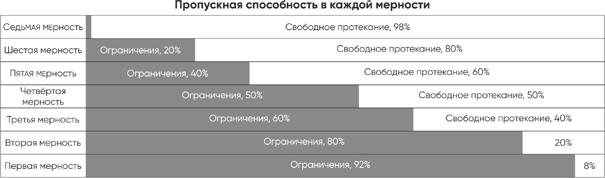 - Пятимерная плотность — 60% пропускной способности и 40% ограничений.
