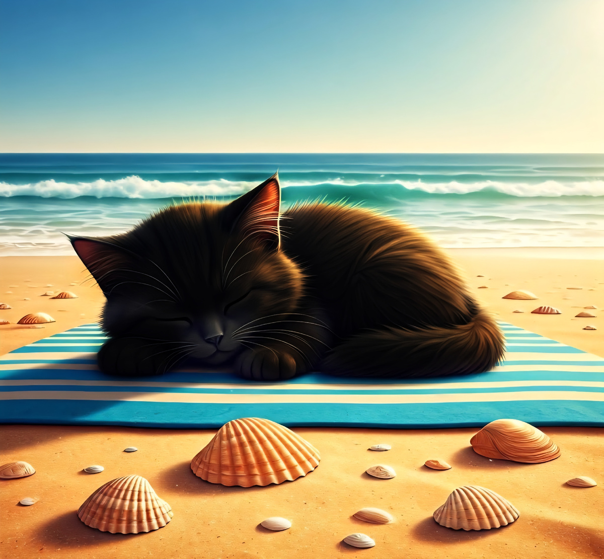 Перчик проснулся от чьего - то плача. Он открыл глазки: папа лежал рядом с котенком с закрытыми глазами, а мама купалась в речке. Малыш начал вертеть головой и искать того, кто плачет. Вскоре он заметил, что на берегу сидит щенок и трет глаза. Котенок решил не будить папу. Он потихоньку встал с пледа и подошел к щенку.
