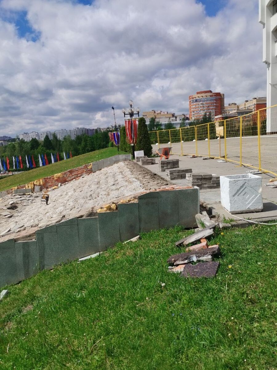 Центральную лестницу к Белому дому, администрации Владимирской области, вновь ремонтируют. Идут капитальные работы, прежнее покрытие ступеней из гранитных плит полностью снято. Работает тяжелая техника. ООО «Лидер Строй» выполняет работы по реконструкции на 17,7 миллиона рублей.